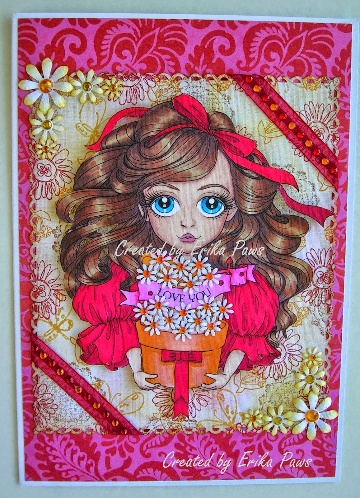 Vicky says: I Just love Lucy Loo and the rendition that Holley has done with this fabulous image! The use of the flowers and the bling is just awesome. Really love the sentiment that as been used on this. Fabulous!!!